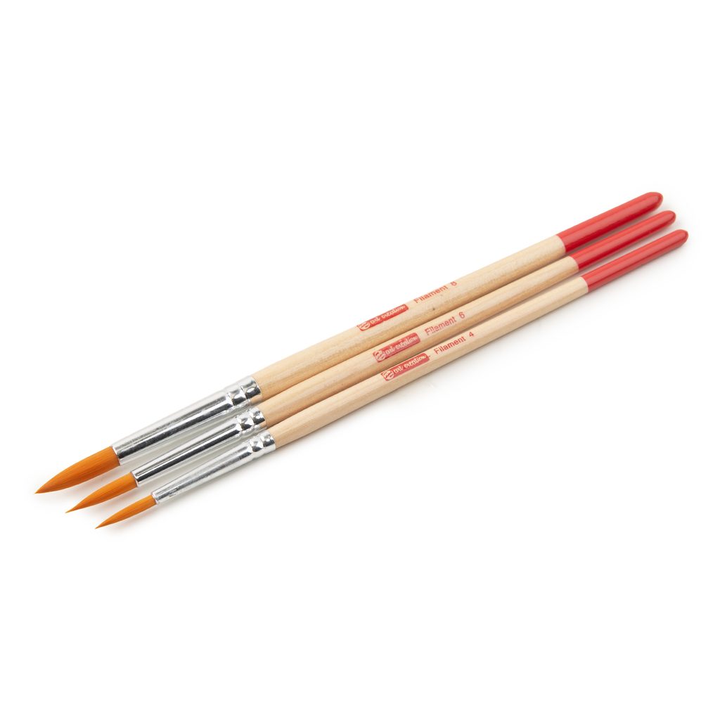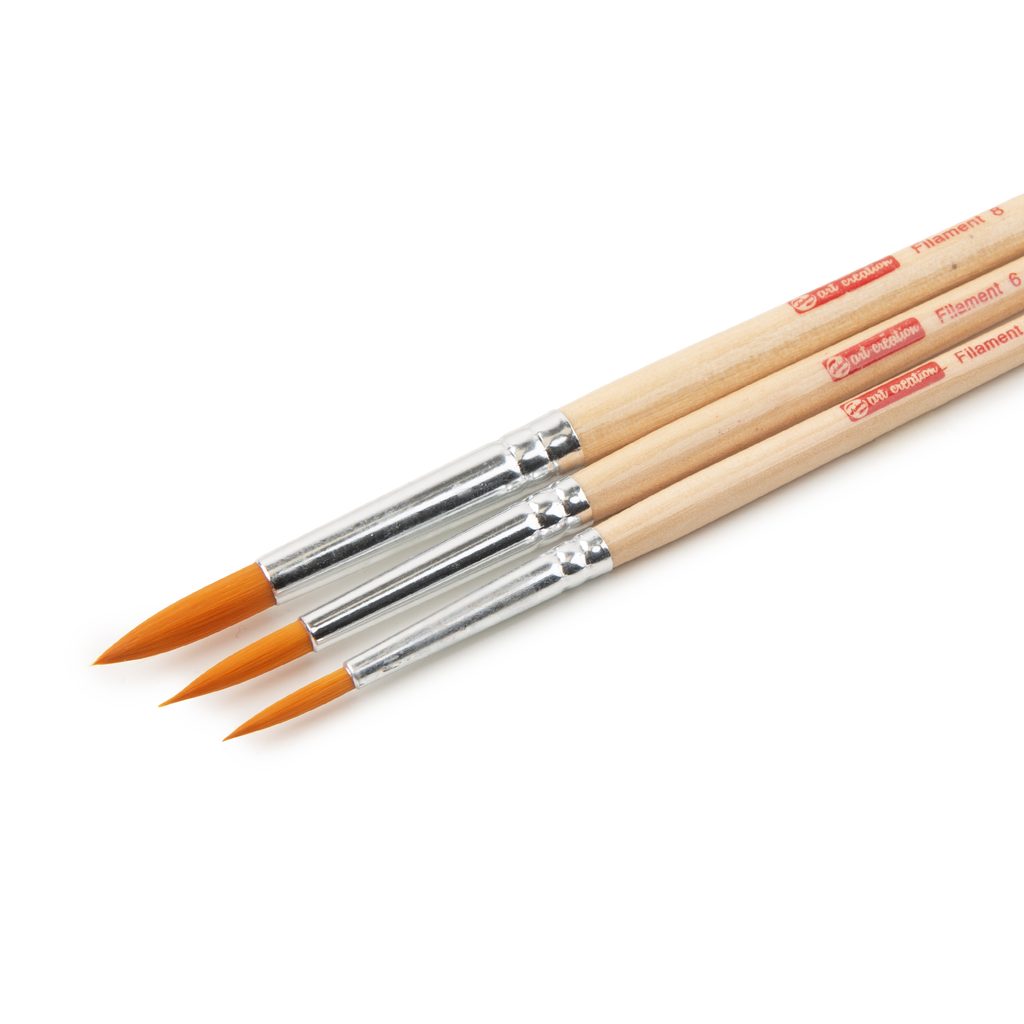 Sada okrúhlych štetcov so syntetickým vlasom z radu Art Creation sa skvele hodí na maľbu akvarelom. Syntetický vlas dokáže absorbovať veľké množstvo akvarelovej farby a vďaka veľmi jemným hrotom možno štetcami jednoducho maľovať aj drobné detaily. Štetce majú lakovanú rukoväť vo farbe svetlého dreva, ktorá sa príjemne drží a dobre sa s ňou pracuje. Na zachovanie čo najdlhšej životnosti štetca ho ihneď po použití vymyte teplou vodou s mydlom a potom vytvarujte štetec do pôvodného tvaru. Štetce skladujte nastojato, vlasom nahor. Štetce sú veľmi odolné voči opotrebovaniu. Sada obsahuje dokopy 3 štetce, konkrétne veľkosti 4, 6 a 8. Dĺžka štetcov je 17,5 cm, 18 cm a 18,5 cm.