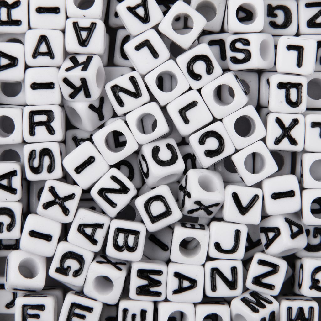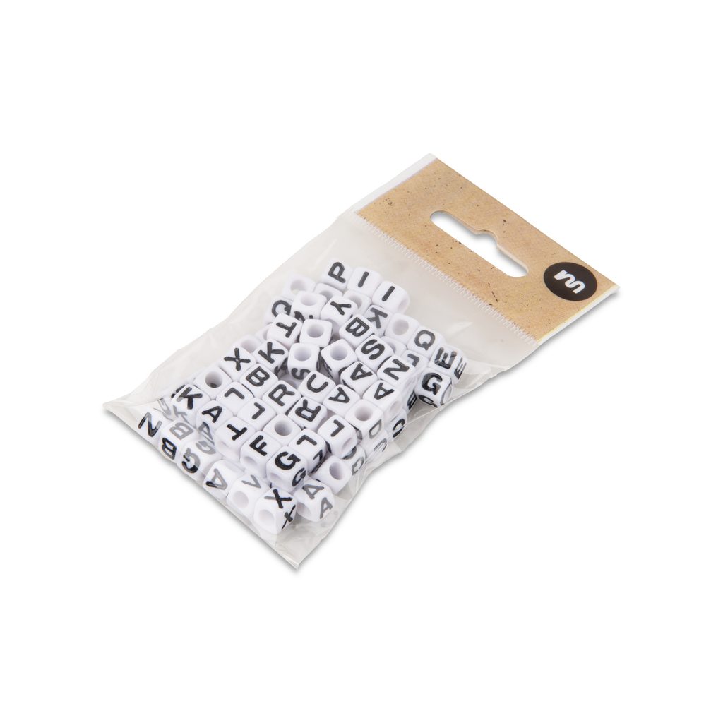 Bílý mix plastových korálků 7 mm s písmeny obsahuje mix korálků s rozměry 7 x 7 mm, které jsou oblíbené pro tvoření náramků přátelství, přívěsků a jiných originálních doplňků. Tyto lehké korálky mají široké průtahy, kterými je možné návlekový materiál provléknout vícekrát. Prohlédněte si náš rozcestník Vše pro náramky přátelství, kde najdete další korálky, se kterými můžete tyto písmenkové krásně kombinovat.
