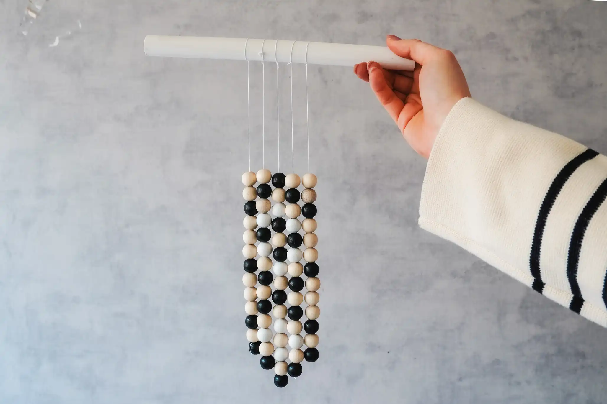 Chcete si trochu zútulniť múr u vás doma, ale zase sa nechcete zatiaľ púšťať do macramé? Tento záves z drevených korálikov je možné riešenie práve pre vás!