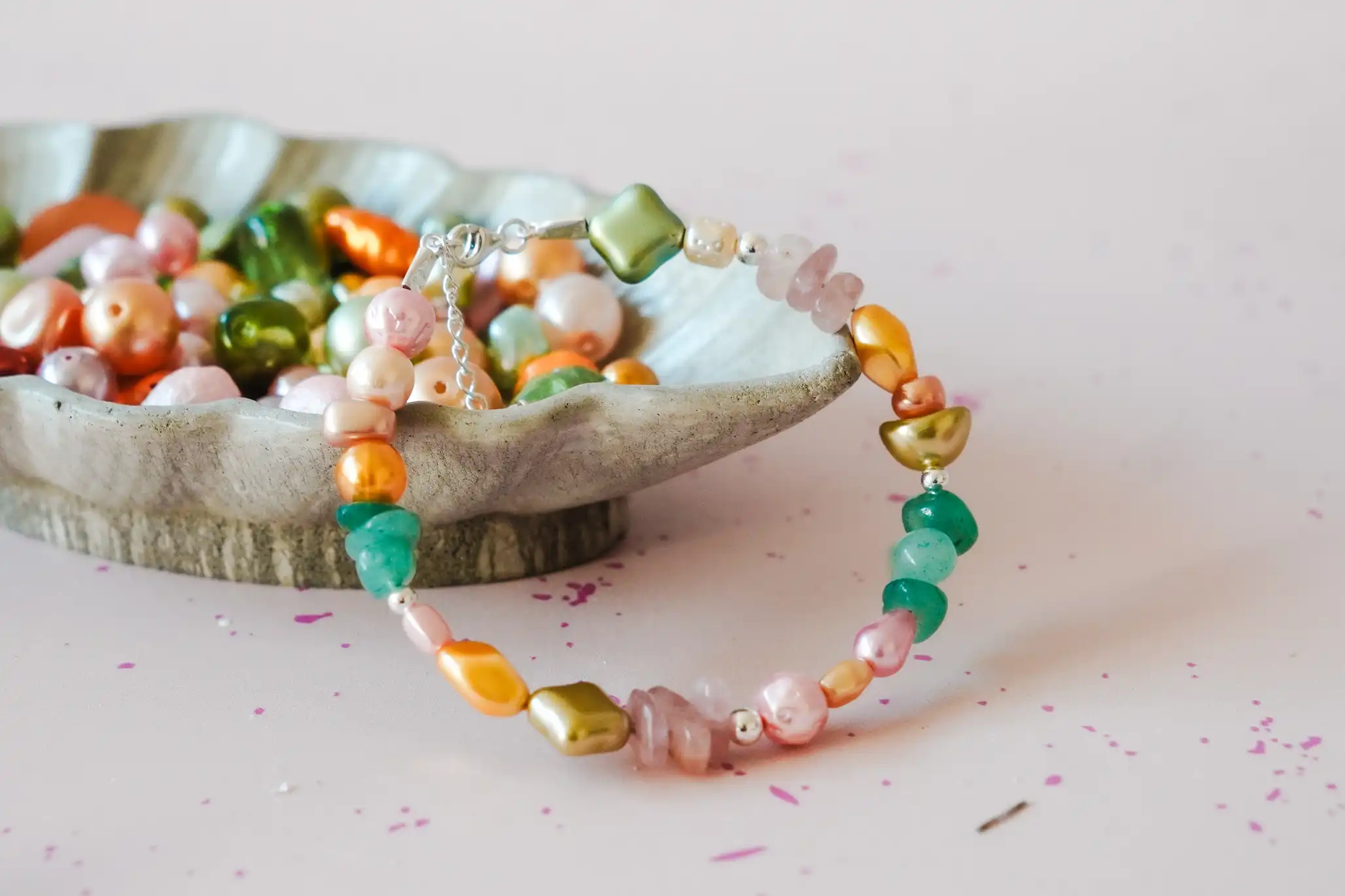 Vytvorte si originálny náramok zo zlomkov minerálov a zmesi korálikov! Korálky aj zlomky za seba môžete navliesť podľa svojej fantázie a žiadny náramok preto nebude rovnaký!