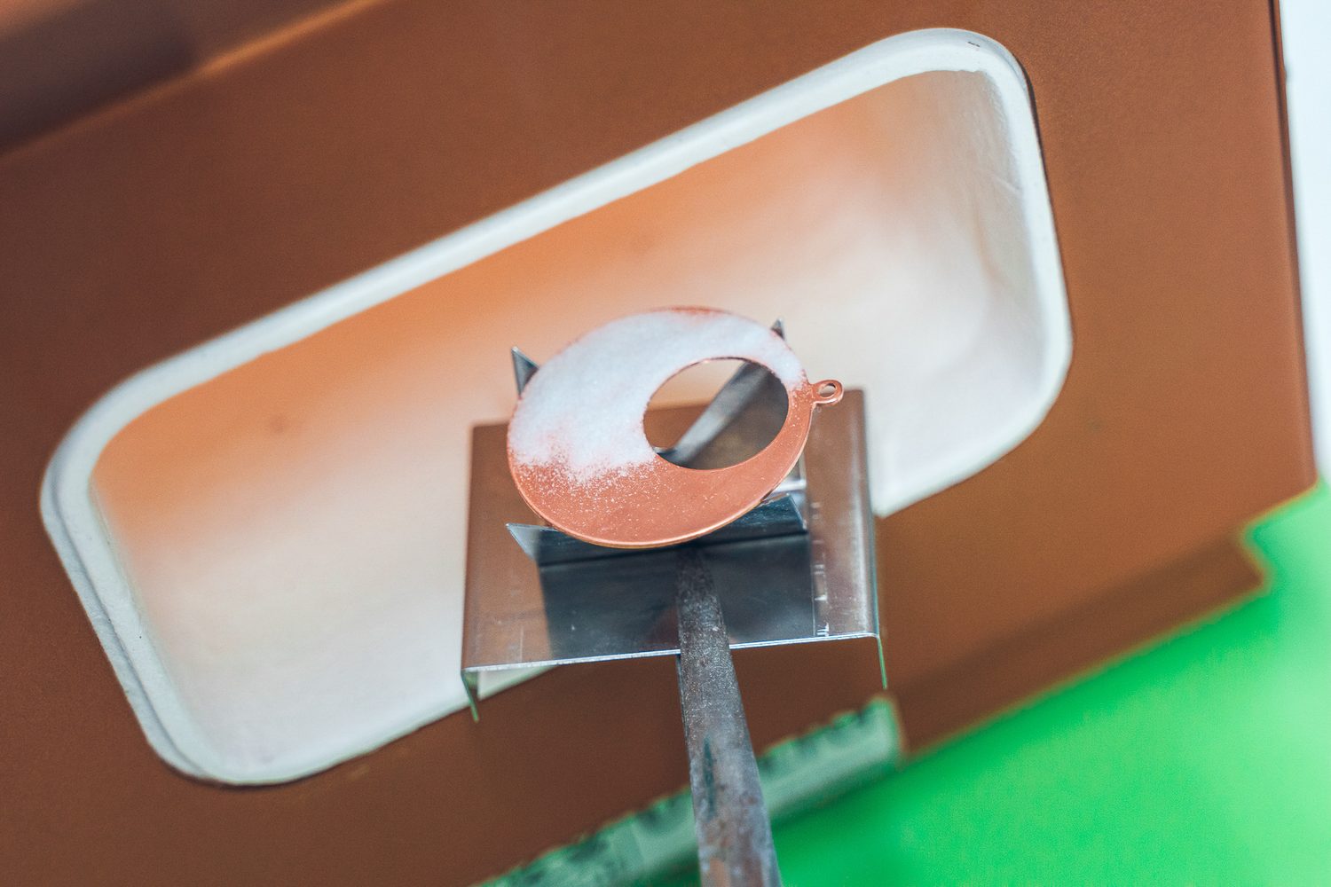Smalty vyzerajú skvele nielen na medených podkladoch, ale aj na modelovacích kovoch – presnejšie na modelovacom Art Clay Silver aj na Art Clay Copper. Vypálené a spracované podklady po odmastení môžeme smaltovať a najmä na striebre farby doslova svietia. Sú jasné a rozžiarené. Na modelovacej medi naopak ponúkajú škálu tajomných chemických reakcií, s ktorými sa môžeme pohrať a sami budeme prekvapení, čo z pece vytiahneme.