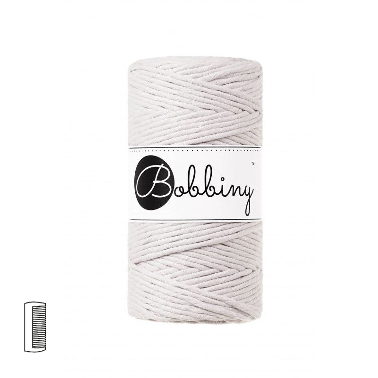 Bobbiny macramé priadza Regular 3mm Moonlight je točená šnúra zložená z 56 vlákien, vyrobená zo 100% recyklovanej bavlny a možno ju rozčesať. Ideálna na macramé techniku. Najviac využívaná je pri výrobe dekorácií na stenu, závesných kvetináčov, kabeliek a iných doplnkov, alebo pri výrobe menších dekorácií, ako sú macramé pierka, lístočky či anjelikovia.