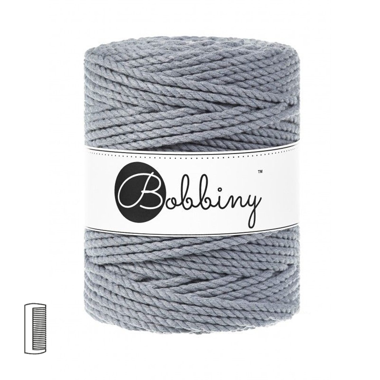Bobbiny macramé priadza XXL 3PLY 5mm Steel je vyrobená z recyklovanej bavlny, vrátane cievky z recyklovaného papiera. Možno rozčesať. Trojito stočené šnúry z troch 20-nitkových šnúrok sú spoločne pevnejšie, ale tiež sa dajú ľahko oddeliť pre ďalšie samostatné použitie. Používajú sa pri tvorení dekorácií rustikálnejšieho charakteru.