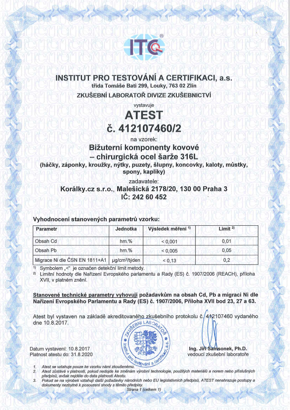 Nižšie nájdete zoznam certifikátov k rôznym korálikom, komponentom aj ďalším produktom.