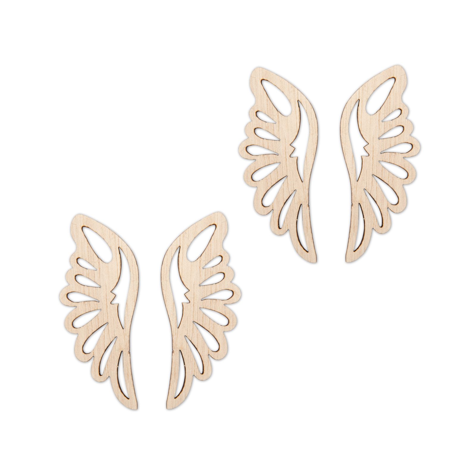 Dřevěný výřez andělského křídla můžete použít k dozdobení dárkových balení a jiných předmětů, při další tvorbě nebo jej můžete klidně jen zavěsit na provázek jako krásnou dekoraci do vašeho domova. V případě dozdobování můžete využít akrylové barvy i fixy, nádherně budou vypadat například ty metalické, ke kterým můžete vybrat vhodnou ozdobnou stuhu nebo provázek. Motivy jsou vyřezávané laserem a dřevo je neopracované. Balení obsahuje 2 páry andělských křídel (tedy celkem 4 kusy křídel). Rozměry křídel jsou cca 50 x 20 x 2,5 mm.