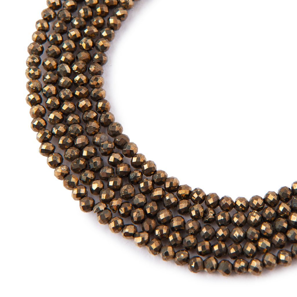 Broušené korálky z minerálu Pyrit o průměru 4 mm najdete na cca 18 cm šňůrce. Každý korálek je originál, a proto může velikost jednotlivých korálků mírně lišit. Můžete si z nich vyrobit krásné decentní náramky, náhrdelníky a další šperky, které budou energické a jedinečné. Pokud se chcete dozvědět více o jednotlivých minerálech, přečtěte si náš článek Vše, co jste kdy chtěli vědět o minerálech. Sepsali jsme pro vás také článek o špercích z minerálů podle znamení zvěrokruhu nebo jak si pomocí minerálů vyčistit čakry.