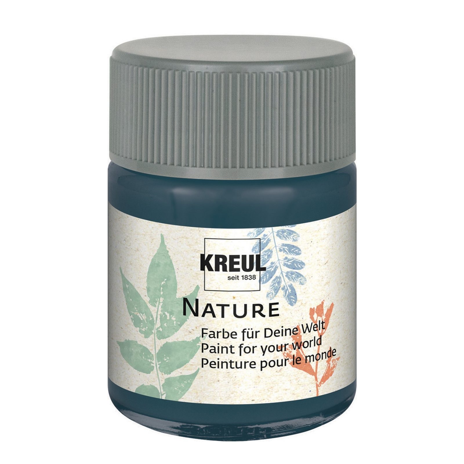 KREUL Nature farba 50 ml modrá je matná, krémová, rýchloschnúca a svetlostála farba založená na vodnej báze. Tieto prírodné farby sú vyrobené z 84 % obnoviteľných prírodných surovín, obalové sklo je vyrobené z 27 % odpadového skla a je 100 % recyklovateľné. Skrutkovací uzáver obsahuje 85 % recyklovaného plastu a štítok sa skladá z 30 % recyklovaných vlákien. Vhodné na maľovanie na kamienky, mušle, drevo, papier, kartón, betón alebo na keramiku. Pre zvýšenie odolnosti nalakujte výrobok lakom v spreji.