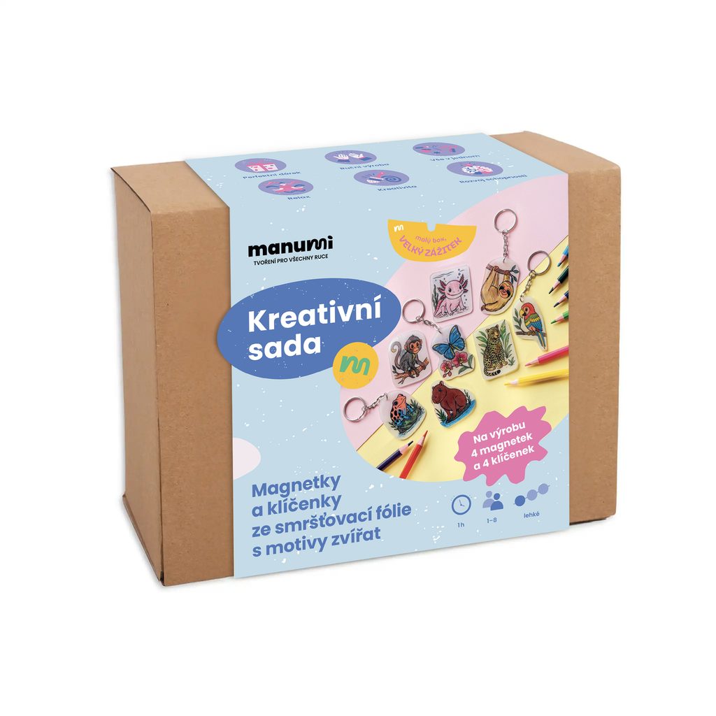 Manumi kreativní sada na výrobu klíčenek a magnetek ze smršťovací fólie s motivy zvířat z džungle je ideální volbou pro všechny malé i velké tvůrce, kteří si chtějí vyzkoušet hravé DIY tvoření pro děti a vytvořit si vlastní originální trendy doplňky. Díky této kreativní sadě si vyrobíte vlastní DIY klíčenky a magnetky ze smršťovací fólie – od vybarvení až po hotový doplněk. Vše potřebné k vybarvení motivů je také součástí balení. Sada je vhodná i pro úplné začátečníky, kteří nemají se smršťovací fólií dosud žádné zkušenosti.