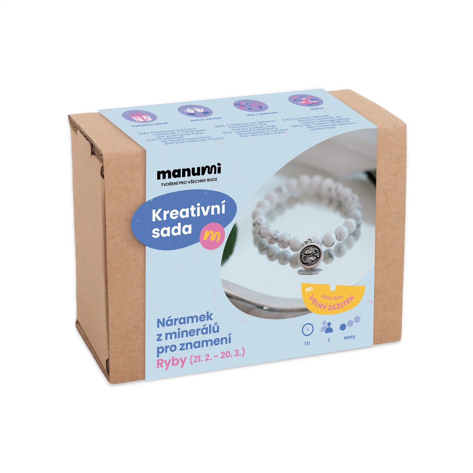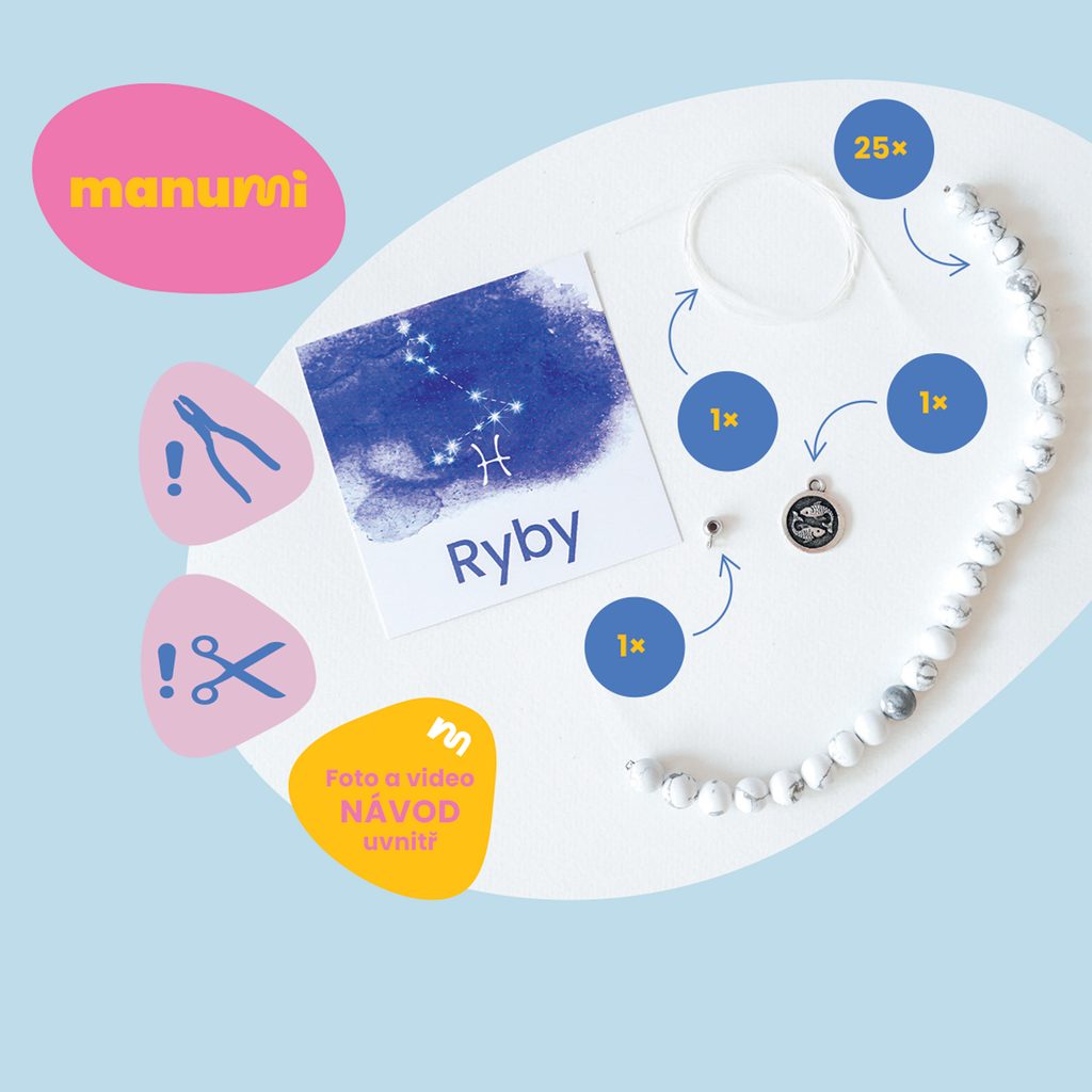 Manumi kreativní sada na výrobu náramku z minerálů se znamením zvěrokruhu Ryby je ideálním základem pro výrobu trendy náramku z minerálů a drahých kamenů. Krom toho, že jsou stylovým doplňkem, jsou také oblíbené pro svou přirozenou krásu, přírodní původ a legendami opředené vlastnosti jednotlivých kamenů. I proto jsou tyto šperky vnímány jako malé osobní amuletky – nositelé klidu, síly nebo rovnováhy. Skvěle se kombinují s dalšími šperky a hodí se pro každodenní nošení.
