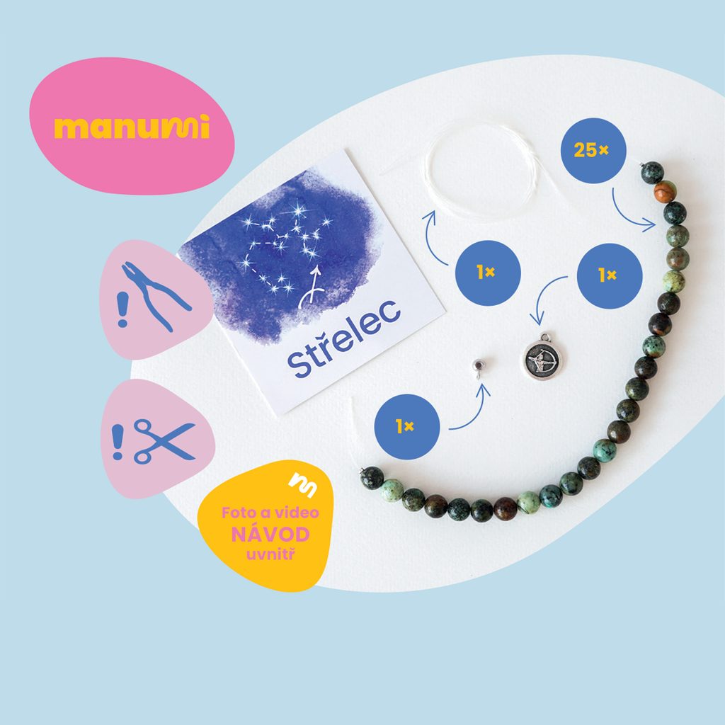 Manumi kreativní sada na výrobu náramku z minerálů se znamením zvěrokruhu Střelec je ideálním základem pro výrobu trendy náramku z minerálů a drahých kamenů. Krom toho, že jsou stylovým doplňkem, jsou také oblíbené pro svou přirozenou krásu, přírodní původ a legendami opředené vlastnosti jednotlivých kamenů. I proto jsou tyto šperky vnímány jako malé osobní amuletky – nositelé klidu, síly nebo rovnováhy. Skvěle se kombinují s dalšími šperky a hodí se pro každodenní nošení.
