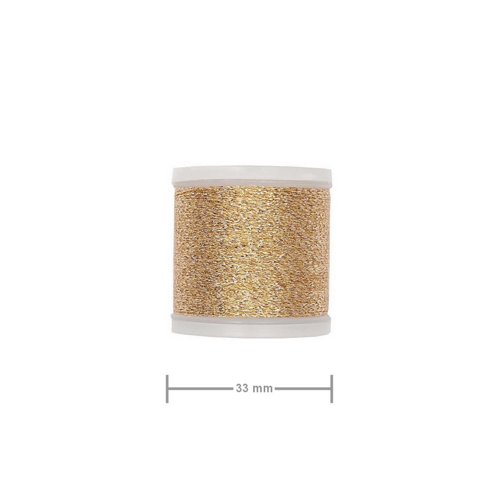 Metalická vyšívacia priadza, niekedy označovaná ako vyšívacia niť, od firmy Rico Design má trblietavú zlatú farbu. Dĺžka návinu je cca 200 m, je vyrobená zo 70 % polyesteru a z 30 % metalického vlákna a je prateľná do teploty 60 °C. Túto niť môžete použiť na zvýraznenie detailov alebo na vyšívanie celých motívov, ktorým chcete dodať originálne lesklé metalické tóny.