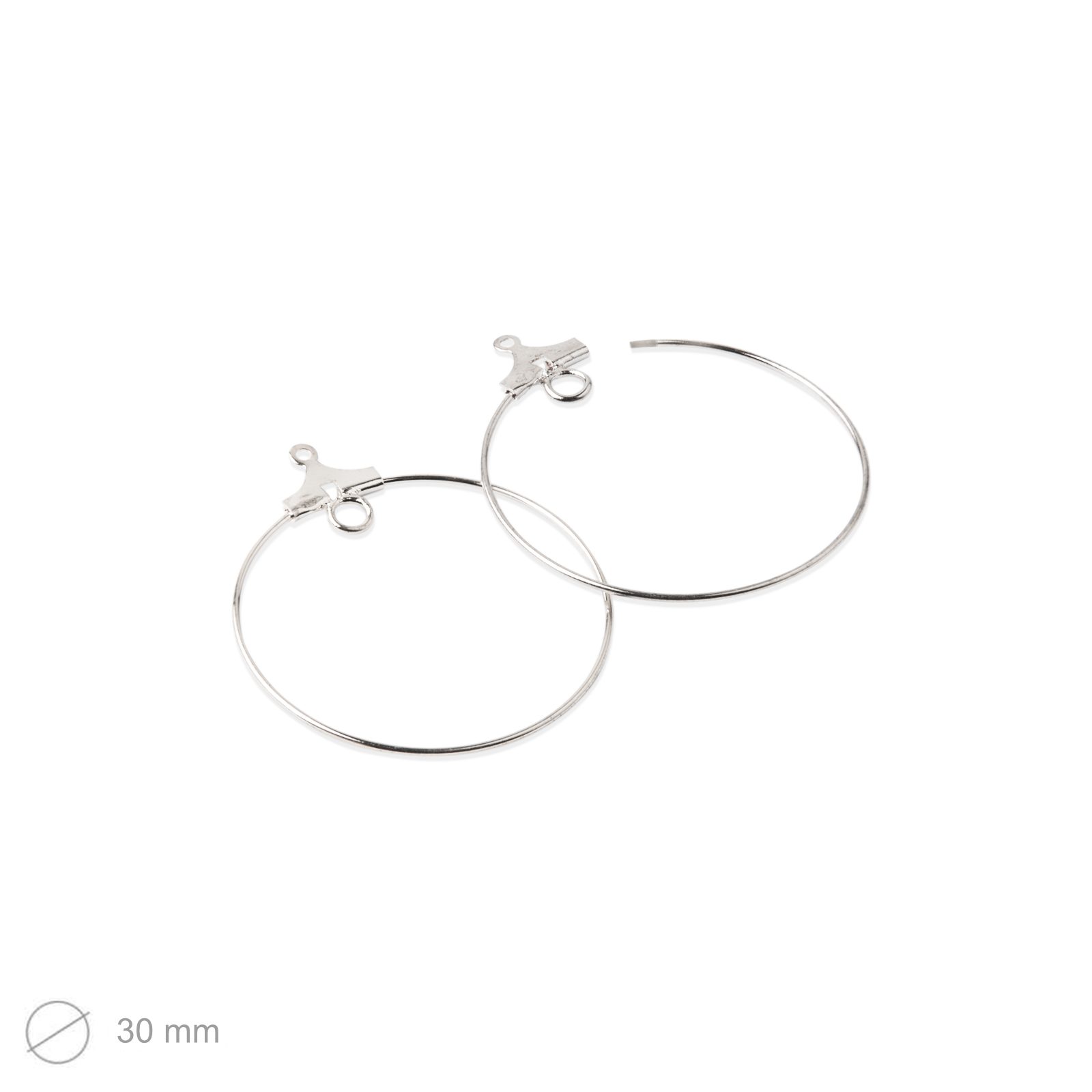 Náušnicové kreole s ověsem 30mm stříbrné mají jeden z konců otevřený. Balení neobsahuje náušnicové háčky.