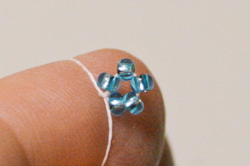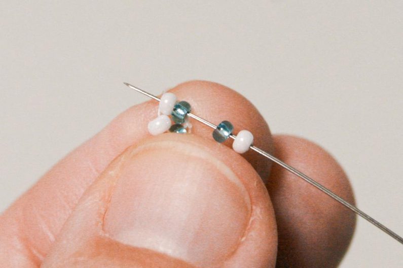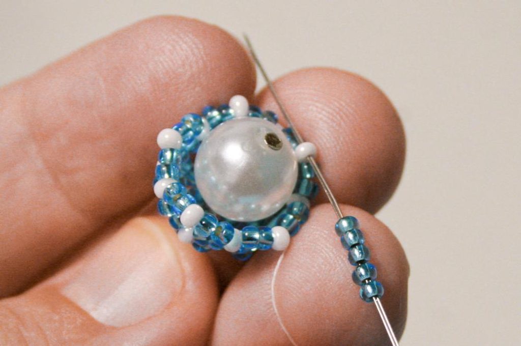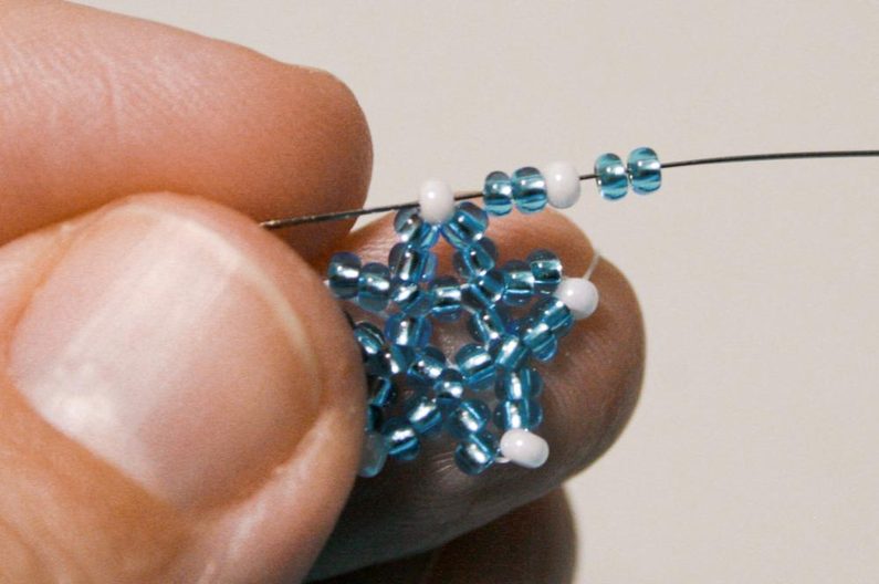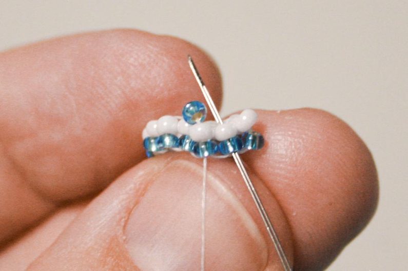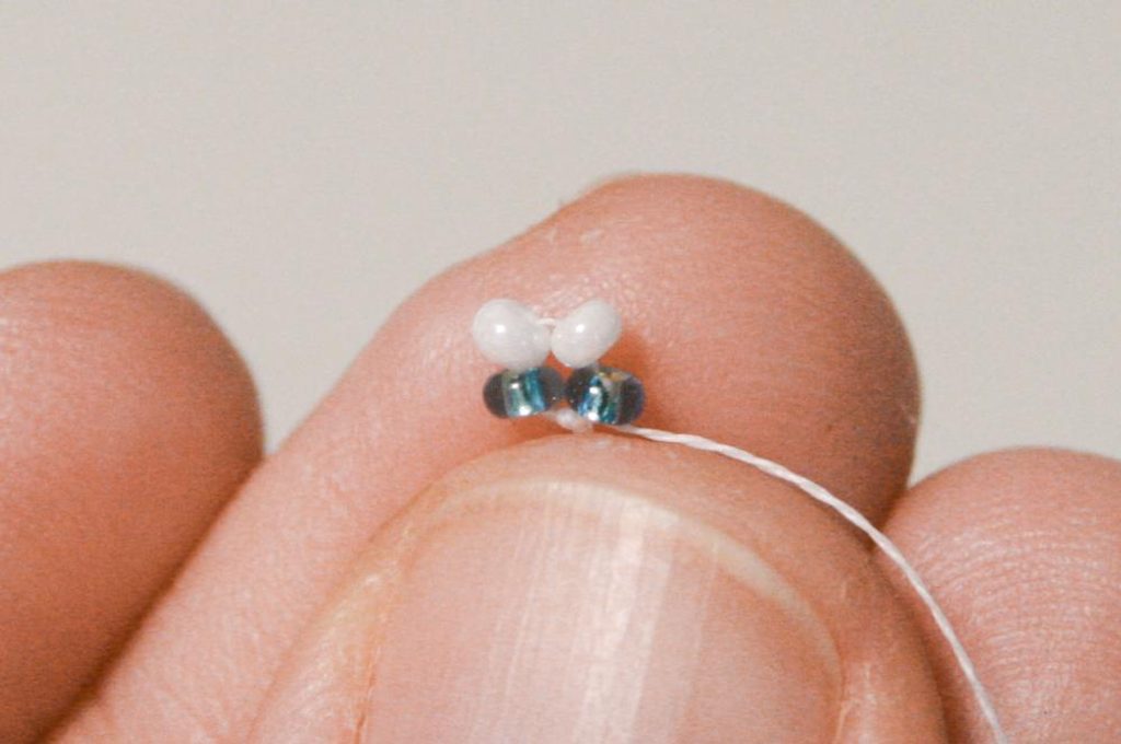 Vyjděte v sousedním korálku (obr. 30) a navlékněte korálky v tomto pořadí: