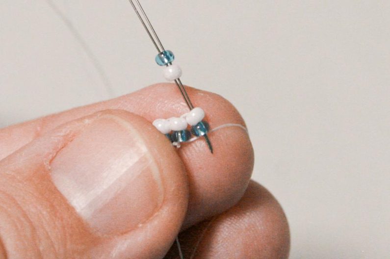 Vyjděte v jednom z korálků PRa, navléknete dva korálky PRb a projděte skrz sousední korálek PRa (obr. 17).