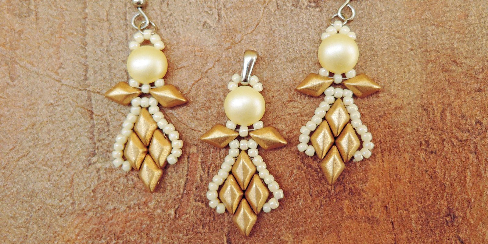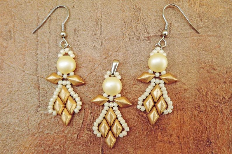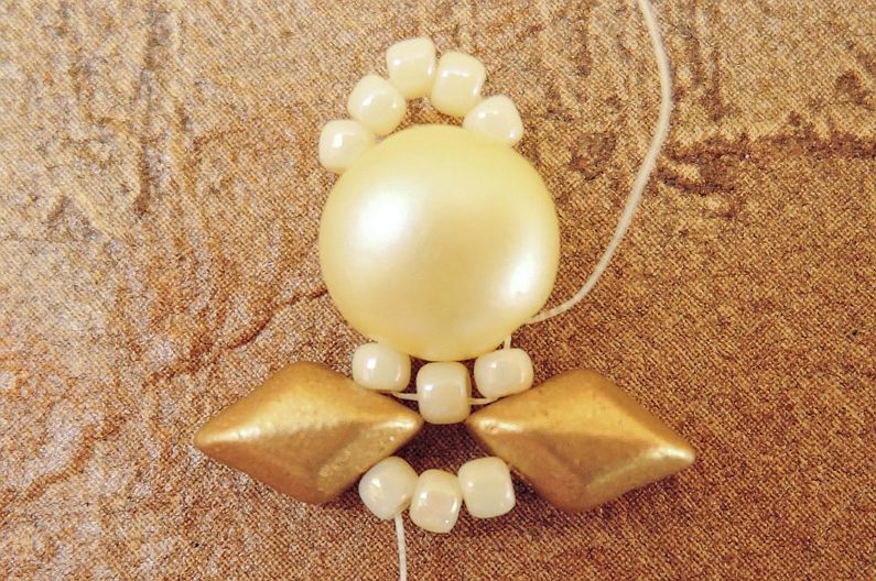 Do obloučku tvořícího svatozář zacvakněte šlupnu. Tou můžete provléknout řetízek nebo karabinku. Nebo si ušijte andělíčky dva, prostředním rokajlem „svatozáře“ provlékněte tenký spojovací kroužek, do něj navlékněte afroháček a máte roztomilé náušnice.