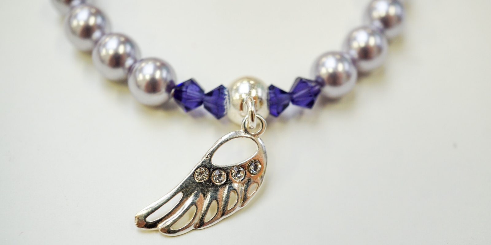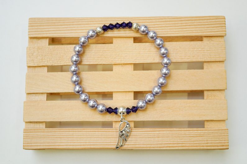 A poté navlékáme korálky a dle obrázkového vzoru. A na distanční kroužek připojíme pomocí kleští stříbrný přívěsek.