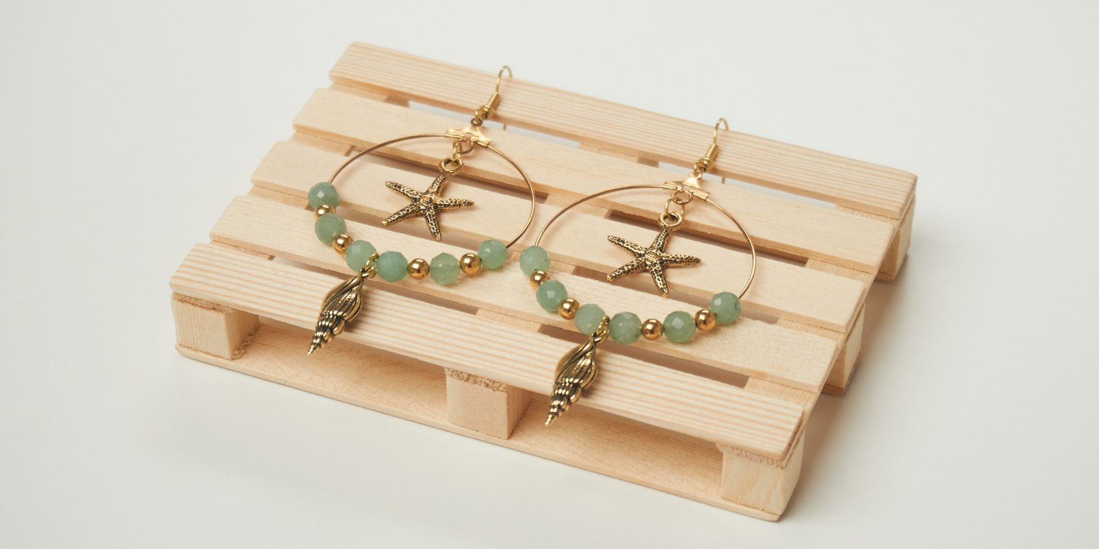 Otevřeme si naušnicovou kreoli, na kterou navlékneme broušené a kovové korálky a doprostřed na spojovacím kroužku navlékneme mušli TierraCast. Poté konec kreole zakápneme lepidlem a uzavřeme.