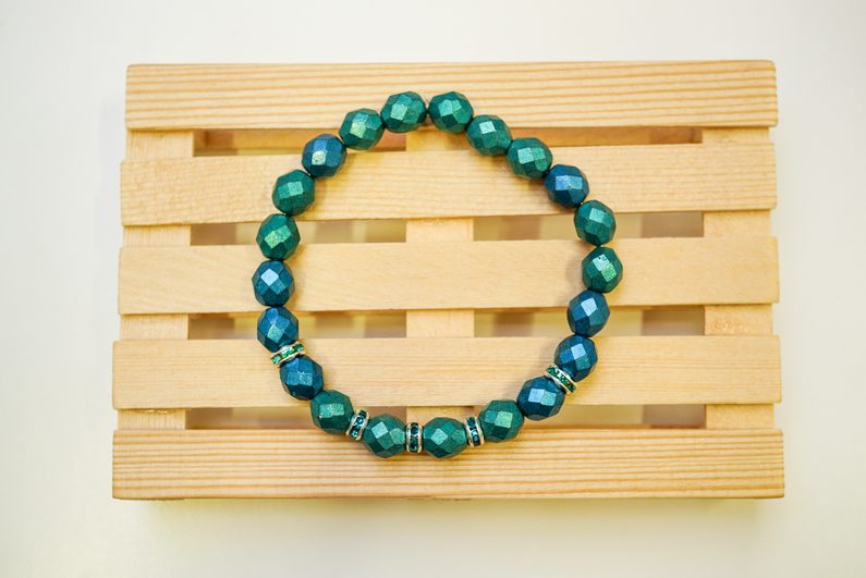 "Množství použitých korálků odpovídá obvodu ruky 17 cm. Pokud potřebujete jinou velikost, je třeba si množství korálků přepočítat."