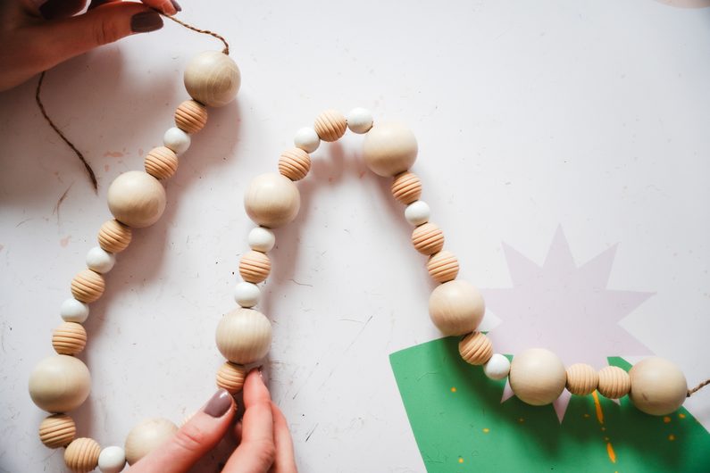 Girlanda z dřevěných korálků na fotky