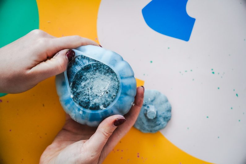 • Poté opatrně vyjmeme z formy a necháme doschnout. Do krabičky můžeme následně vylít svíčko nebo ji použít na jiné poklady.