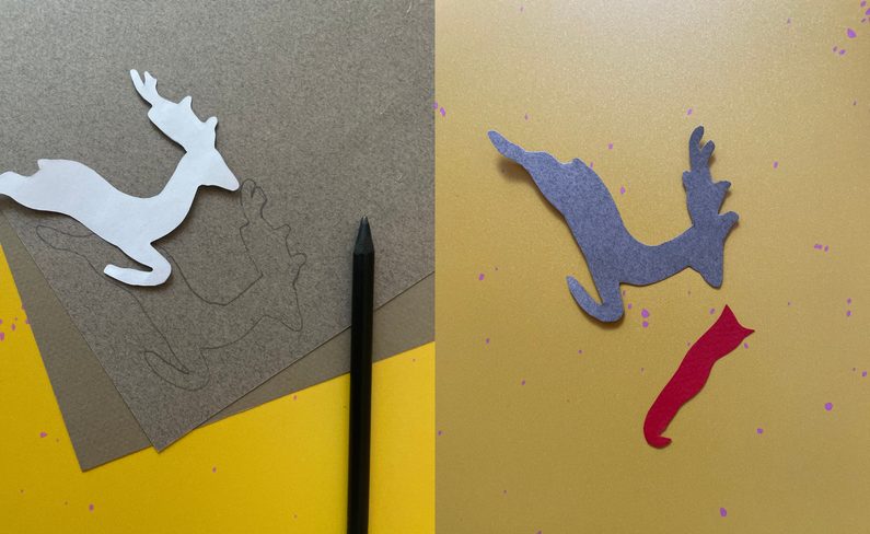 Podle předlohy si obkreslíte tvar jelena a šálu z dalšího barevného papíru.