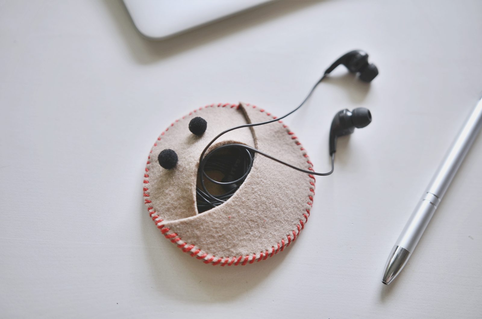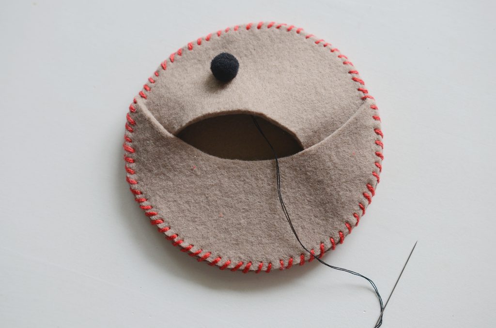 • Prošijte celý kruh plsti shora. Uzlík se tak ve výsledku schová dovnitř kapsy.