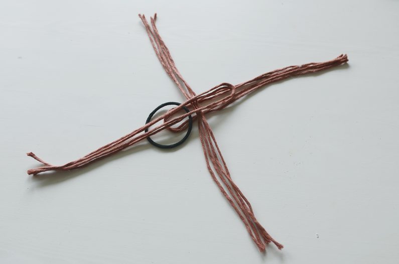 Odměřte si šňůry o následujících délkách: 4x45 cm, 4x35 cm, 2x30 cm a 4x 20 cm. Šňůry budete používat zdvojeně.