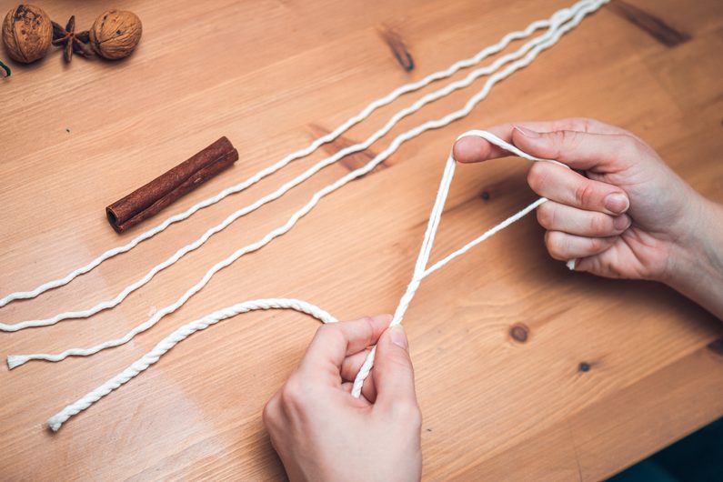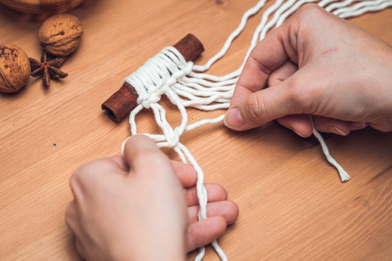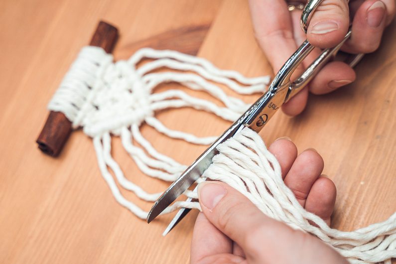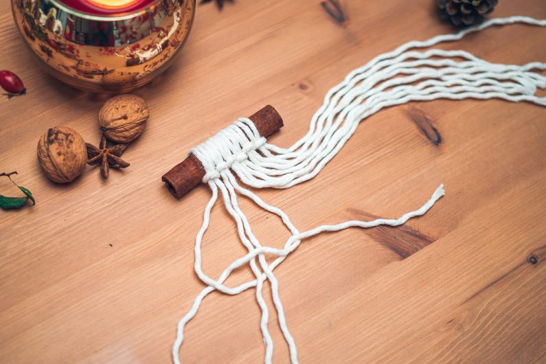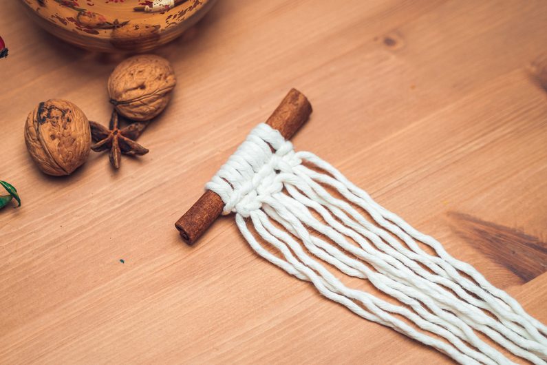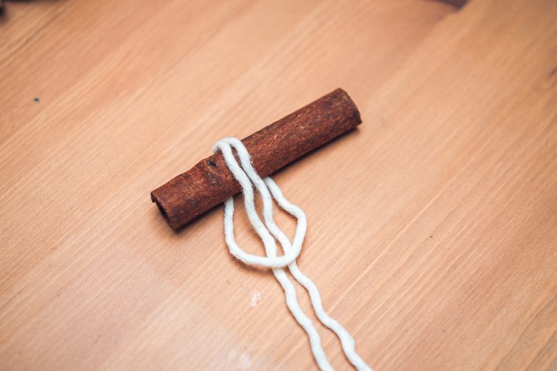 Šňůrky navažte na skořici podle vzoru.
