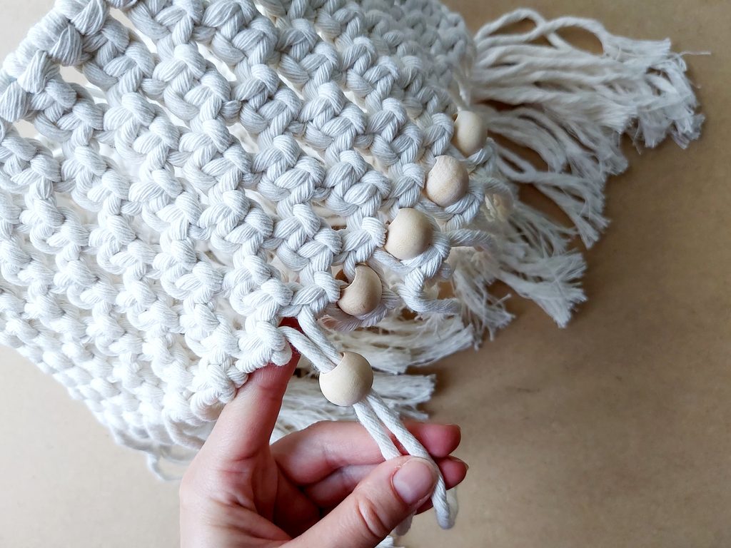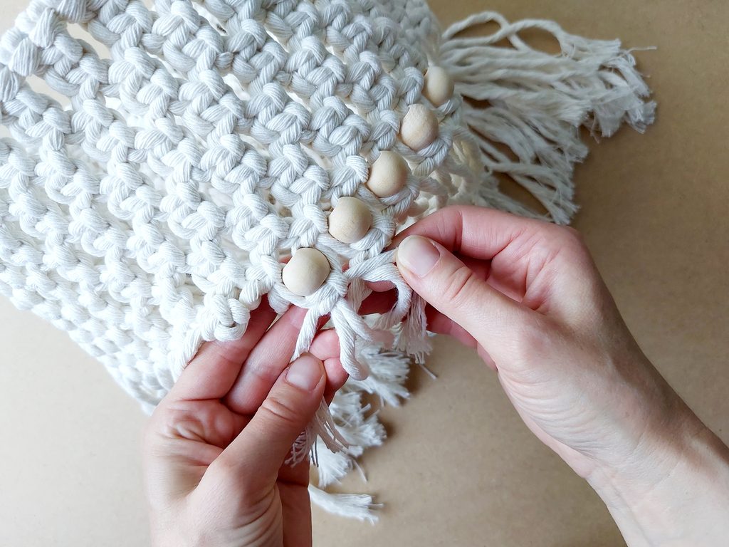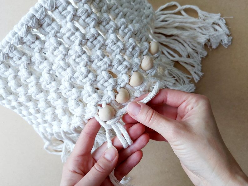 Navlékneme korálek, který upevníme opět plochým uzlem.