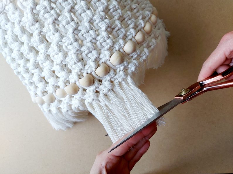 Konce rozčešeme a zastřihneme. Hotové stínidlo již stačí jen zavěsit třeba na lampičku.