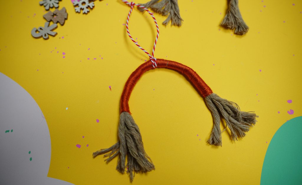 Nakonec ozdobte duhu podle vaší představy. My jsme použili dřevěné výřezy s motivem Vánoc a zimy.