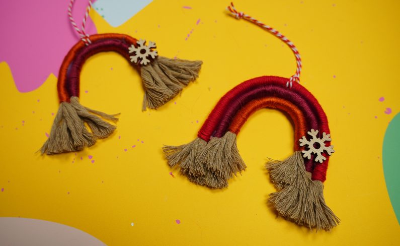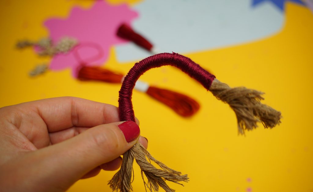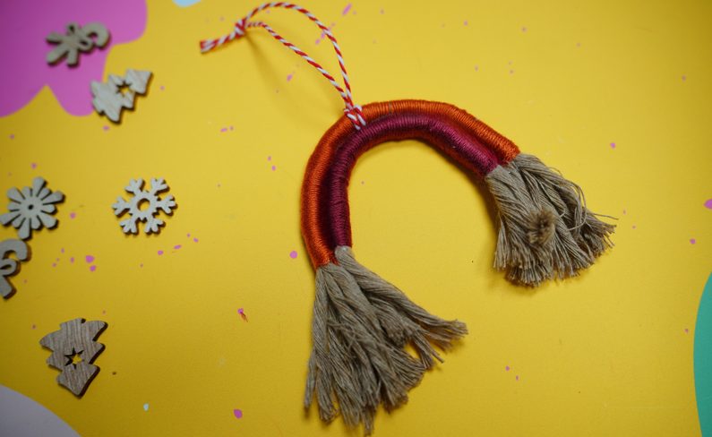 Připevněte na tu nejvrchnější část duhy provázek.