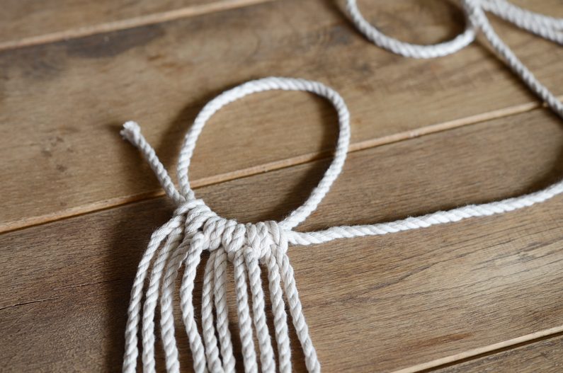 Jednotlivé konce šňůr rozpleťte a nechte volně viset.