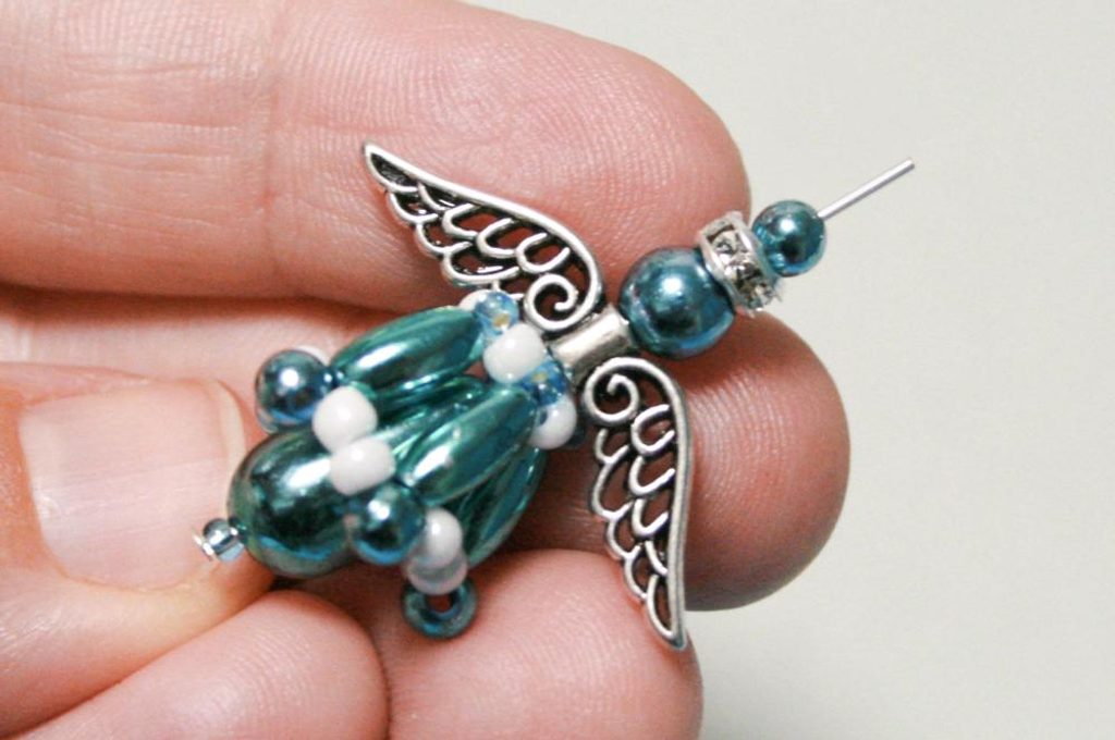Takový anděl může být také pěkným přívěskem, klíčenkou, náušničkami anebo ozdůbkou na mini stromek (obr. 16).