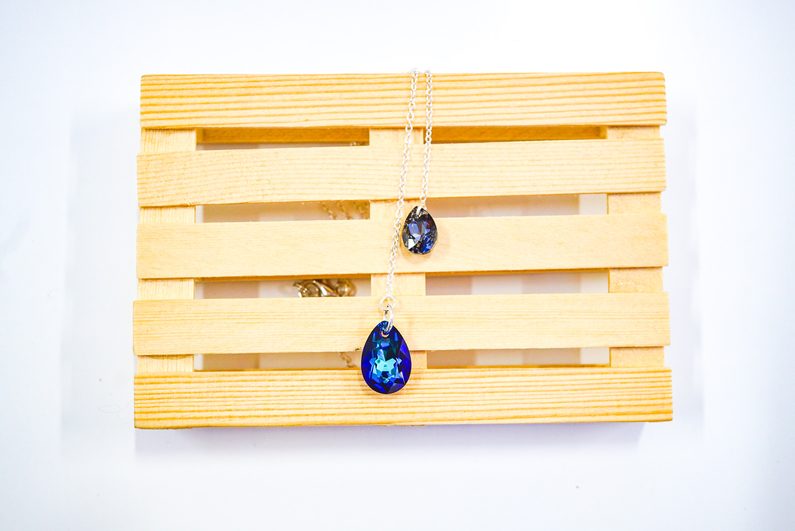 Na jeden konec 4cm i 6 cm řetízku si zavěsíme SWAROVSKI přívěsky pomocí spojovacích kroužků.
