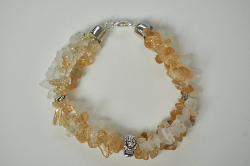 Nyní na jedno z lanek postupně navlékneme zlomky do čtvrtiny a to samé uděláme u zbývajících lanek, ale se zlomky citrínu.