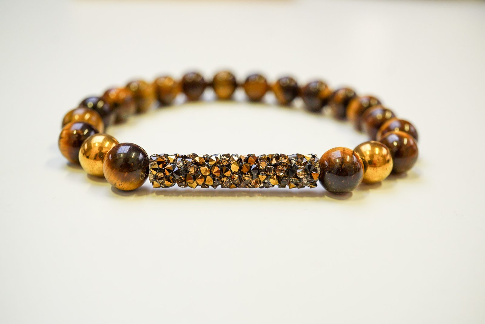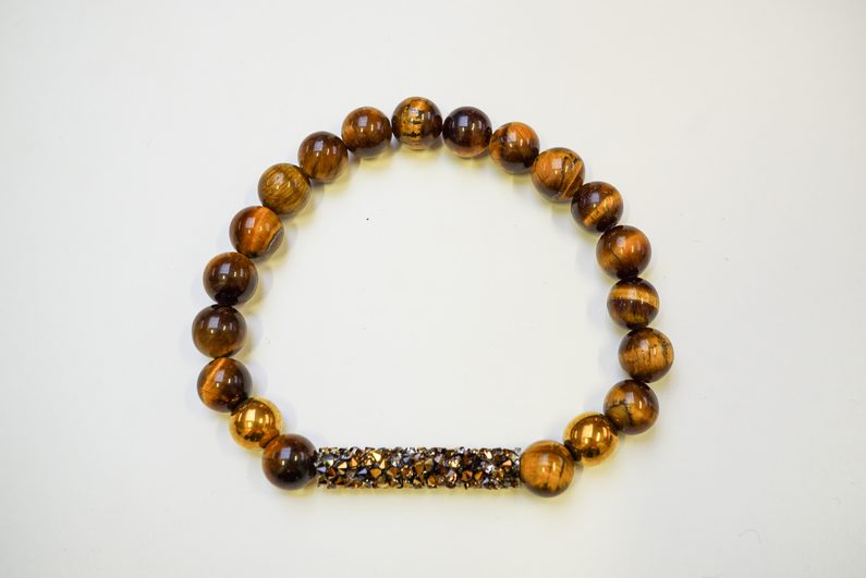 A poté navlékáme korálky z minerálů a SWAROVSKI Rock Tube dle obrázkového vzoru.