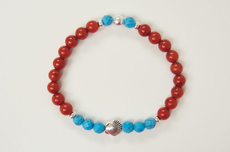 Náramek s broušenými minerály a mušlí 1