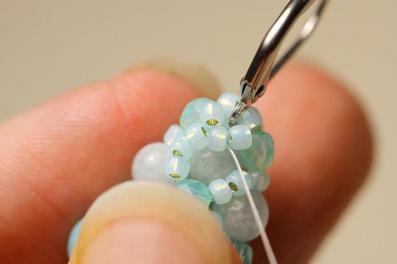 Abychom měli náušnici oboustrannou, pevnou a hezkou, ušijeme poslední kroky (tři patra křížení) i z druhé strany. Pak už jen stačí zakončit uzlíkem, zapošít a vyrobit kolegyni do páru. :)