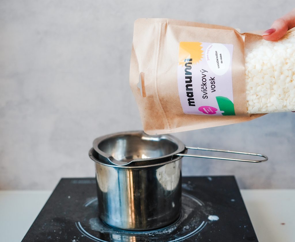 Roztavený vosk nalejeme do skleničky a svíčku necháme vytuhnout. Poté zastřihneme knot. Masážní vosk taje při velmi nízké teplotě. Nemusíte se tak bát, že vás při masáži popálí.