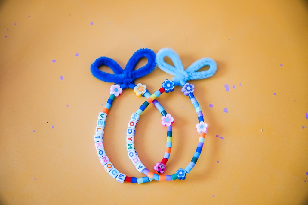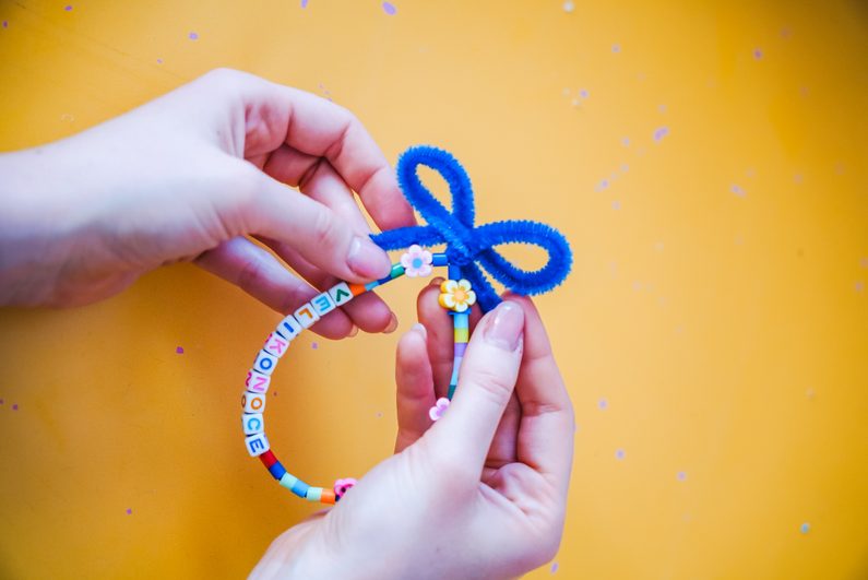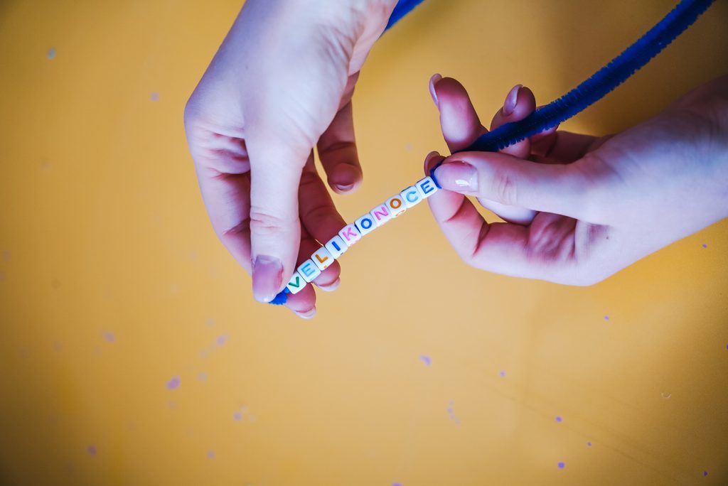 • Navlékneme velikonoční nápis. Konce žinylkového drátu spojíme mašličkou.