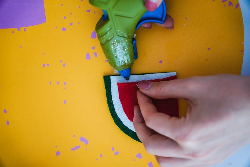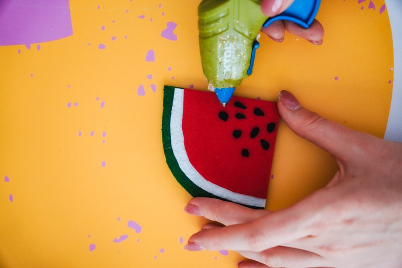 Z černého filcu pak vystříhneme malá kolečka a nalepíme je jako pecky.