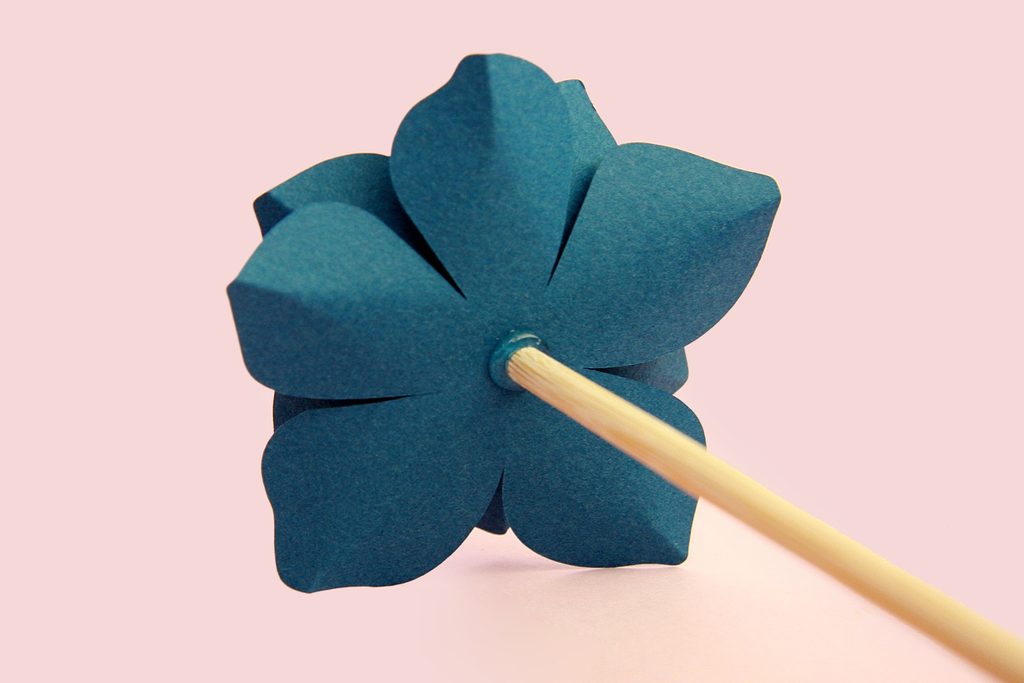 Listy už jen přilepíme na špejle, případně můžeme listy uprostřed ohnout, aby vypadaly více plasticky.TIP: Špejle můžete zkracovat podle potřeby. Květy vypadají hezky vedle sebe, když nemají stejnou délku.