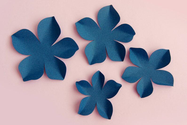 Nejdříve si vystřihneme 4 kusy okvětních lístků.