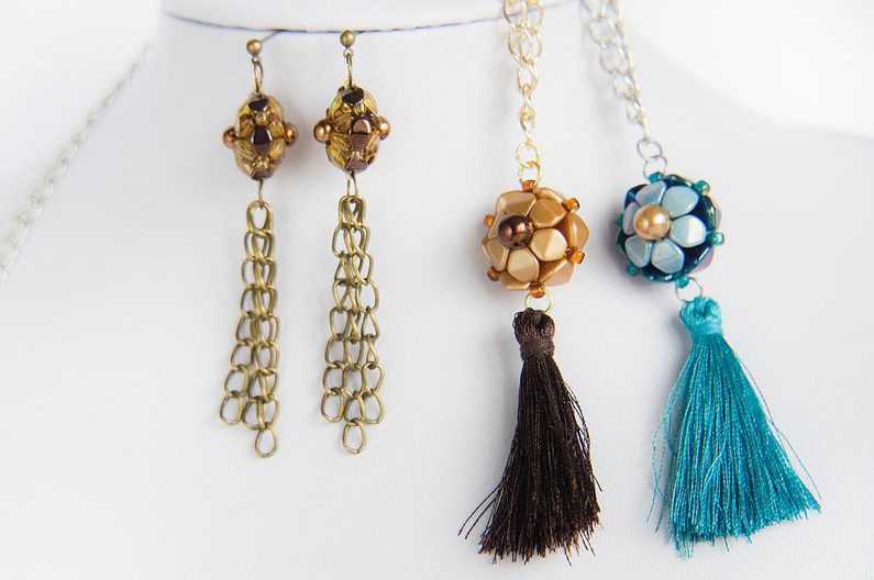 Na kuličku můžeme zavěsit třeba střapec (korálkový, bavlnkový nebo řetízkový).