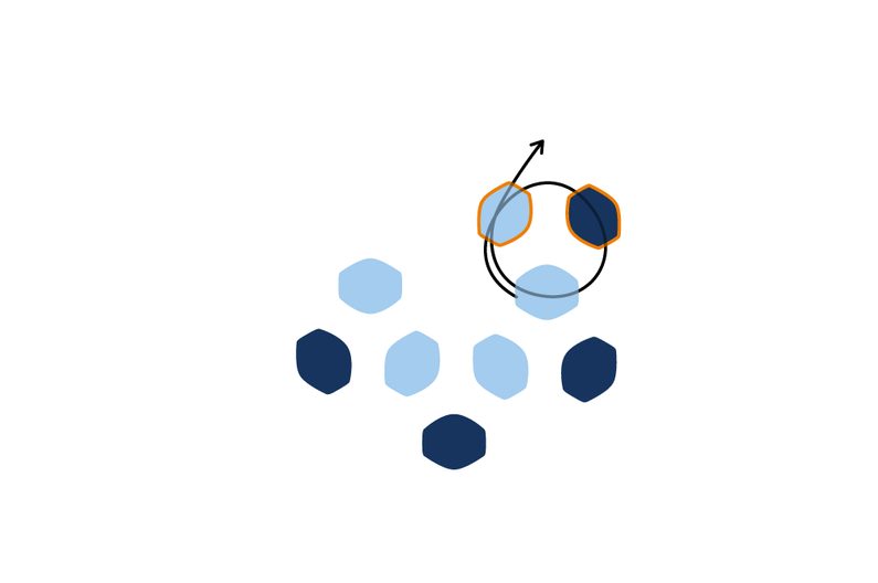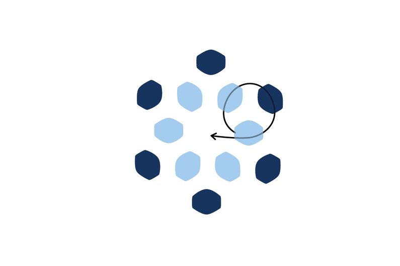 Provlékneme ještě jednou tmavou pohankou a jednou světlou pohankou zpět do středu kytičky (obr. 37 až 38).