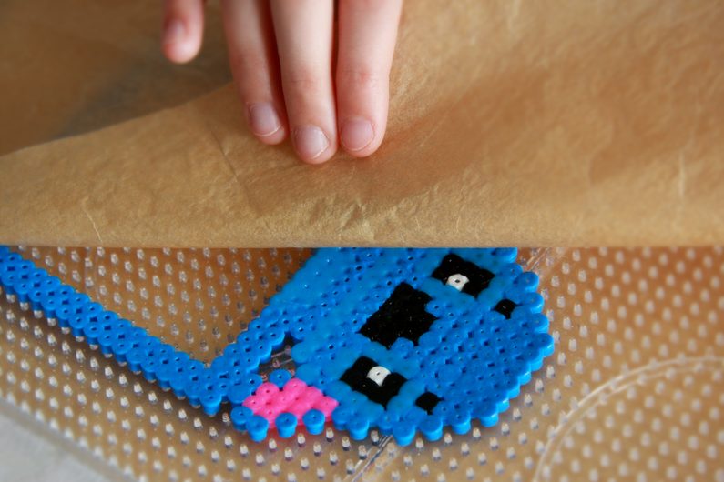 Korálky až se spečou po celé ploše dohromady, rámeček necháme pár minut vychladnout a následně jej sundáme ze zažehlovací podložky.