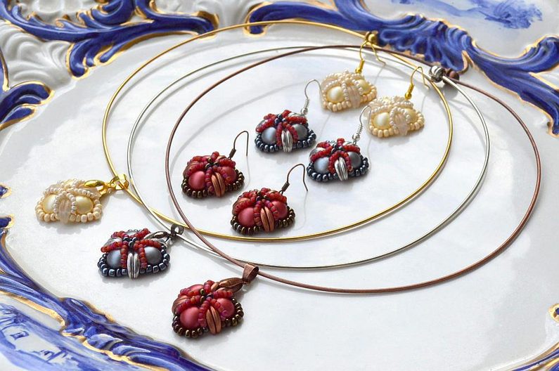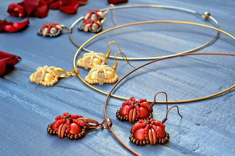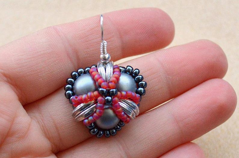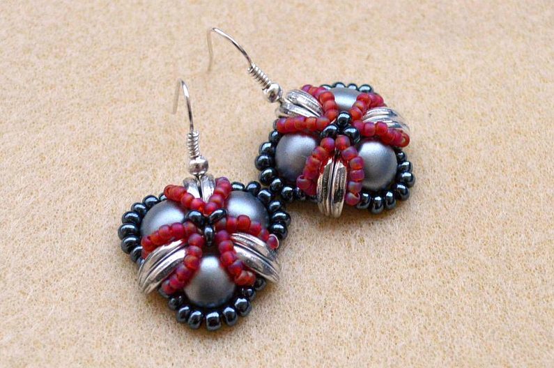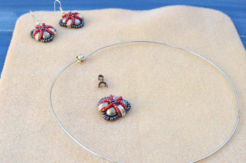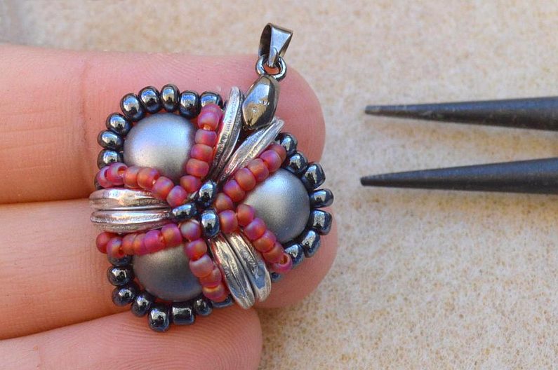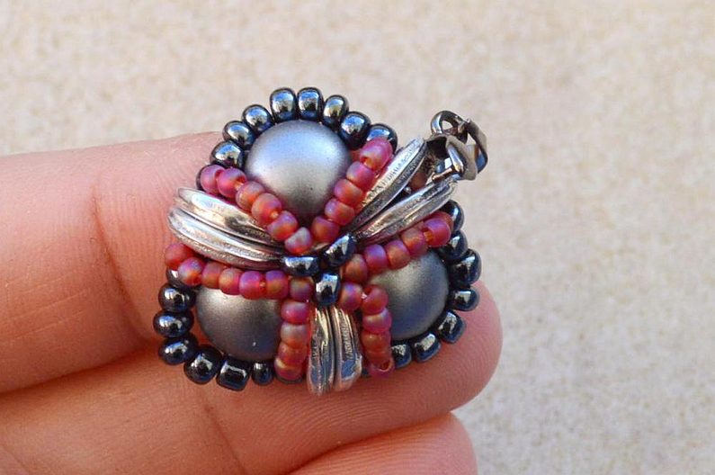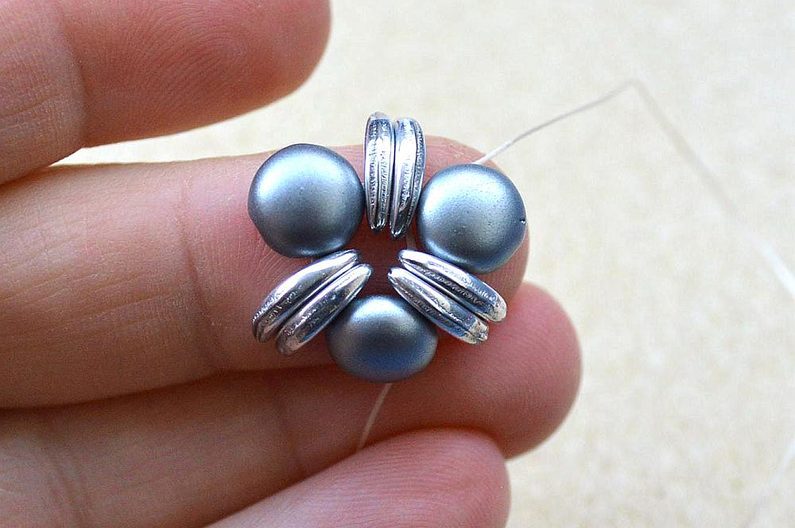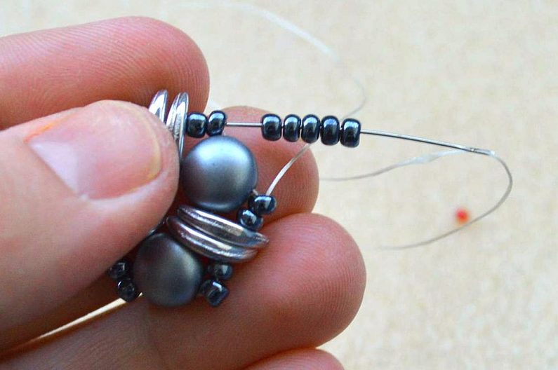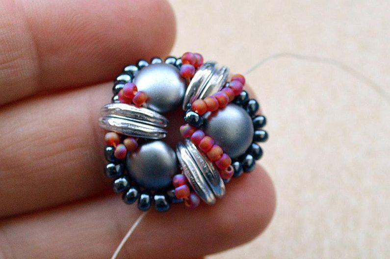 Po dokončení všech 3 šitých komponentů upevníme na jeden s korálkem navíc šlupnu, kterou zamáčkneme kleštěmi a navlékneme na obruč.