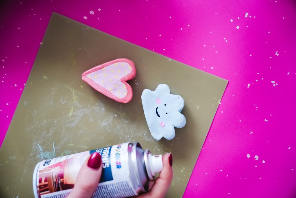 • Vyválíme si kolečko a pomocí tvarovacích nástrojů vytvarujeme do požadovaného tvaru (například srdíčko nebo mráček či duha).