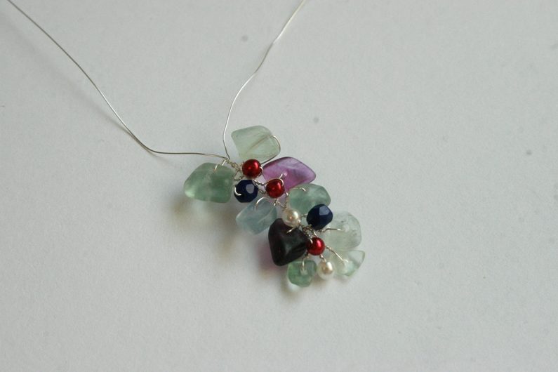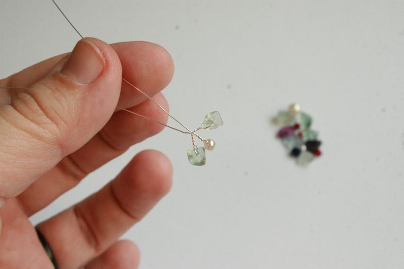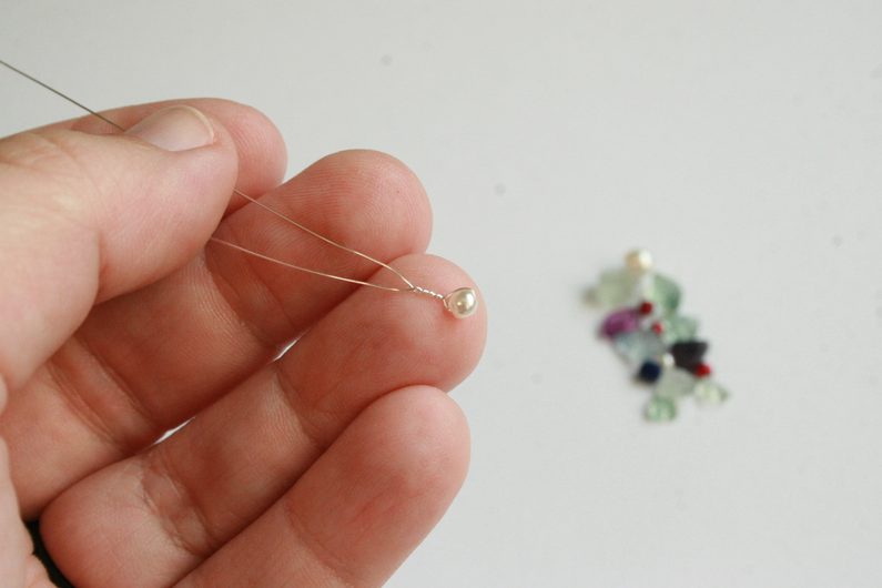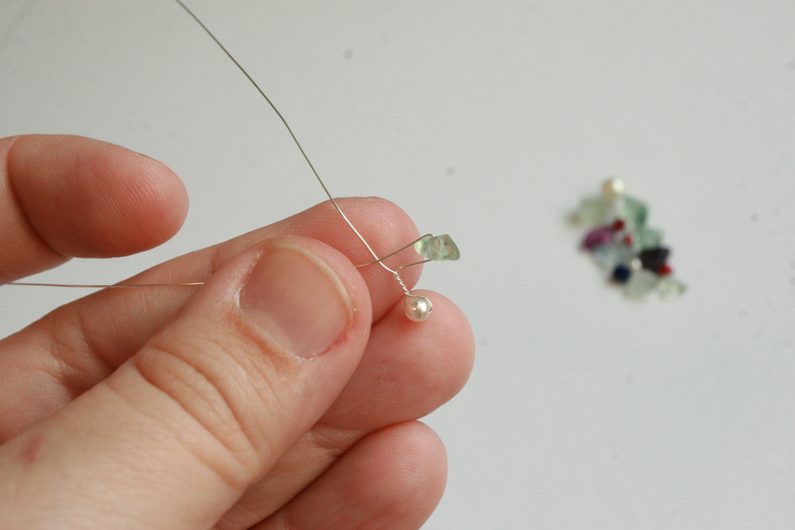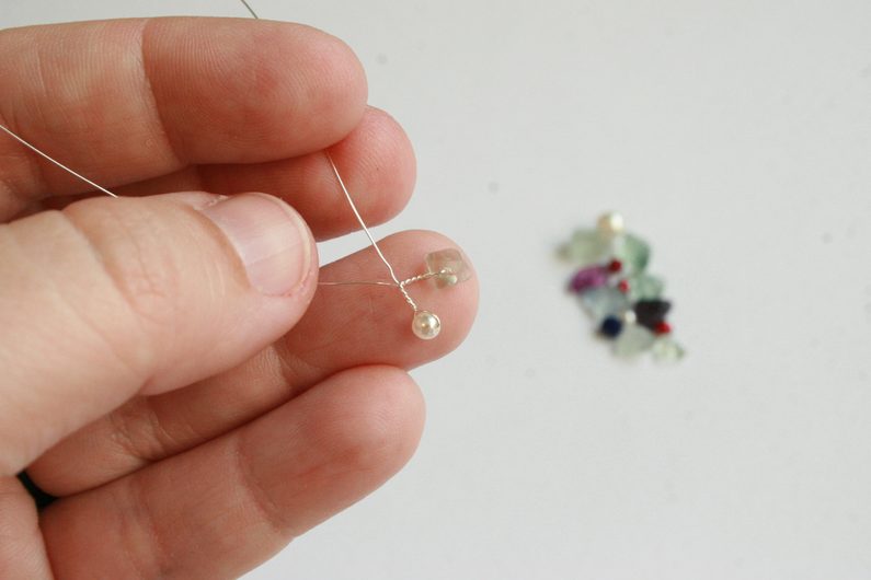 Stočíme konce drátu, navlékneme VPK6b, uděláme očko a obtočíme drát dokola (Obr. 11-12). Navlékneme afroháček (Obr.13). Uděláme druhou náušnici zrcadlově (Obr. 14). A pár jemných letních náušnic máme hotový (Obr.15).